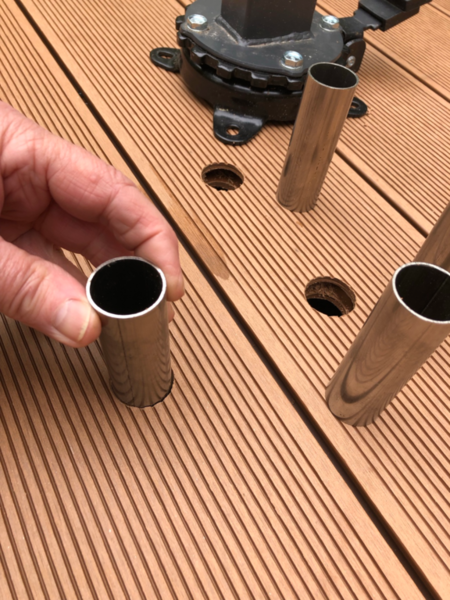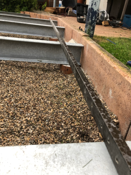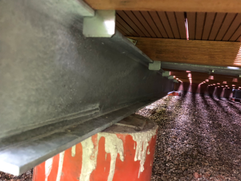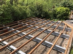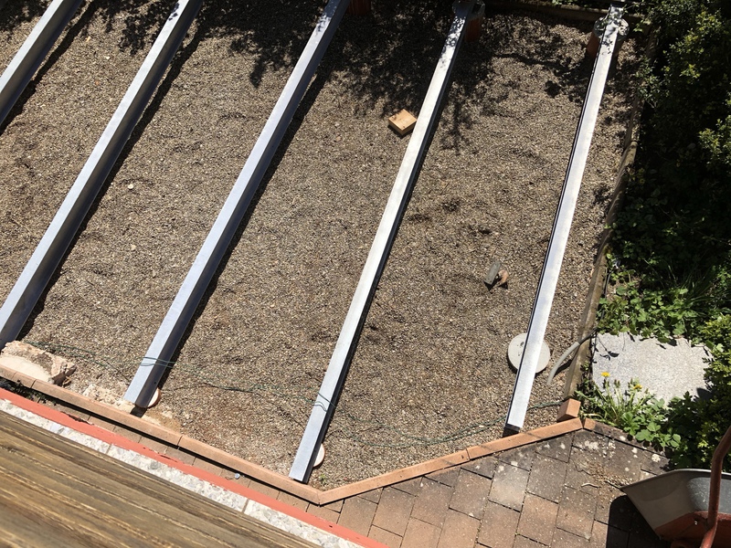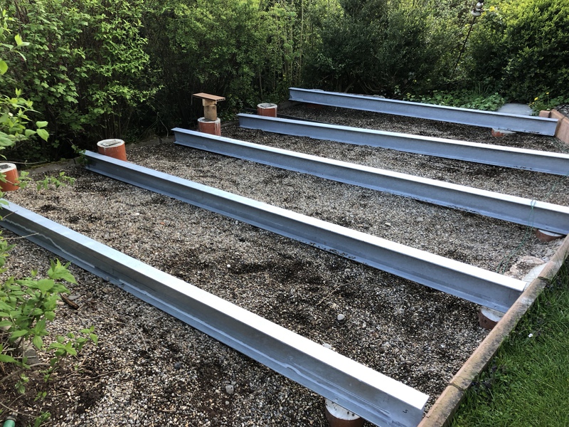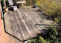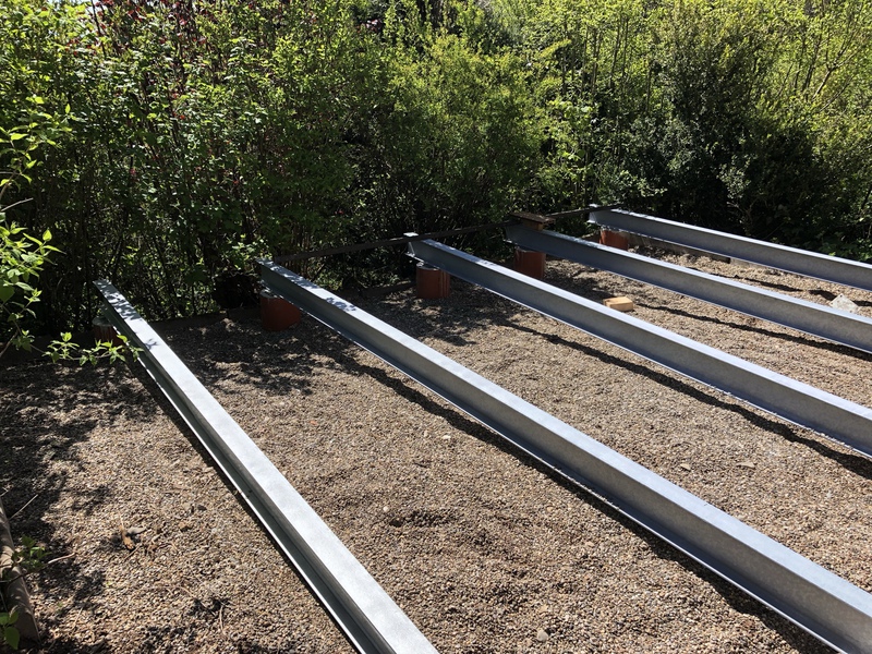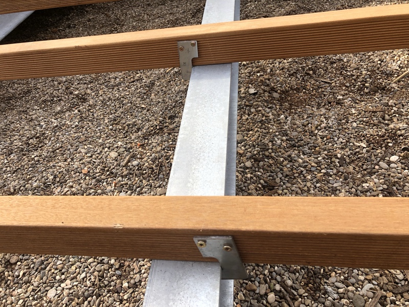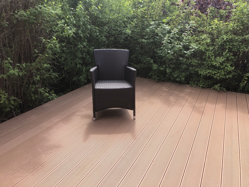 Neue Terasse mit WPC-Paneelen, Holzunterbau auf Stahl-T-Träger.