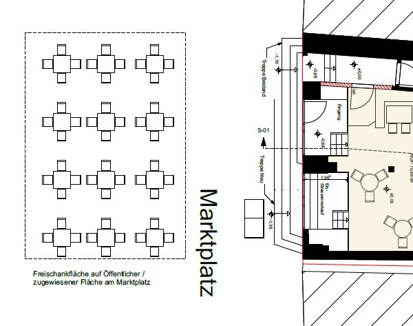Eine Außenbestuhlung mit 60 Plätzen ist genehmigt und von der Stadt ausdrücklich erwünscht.